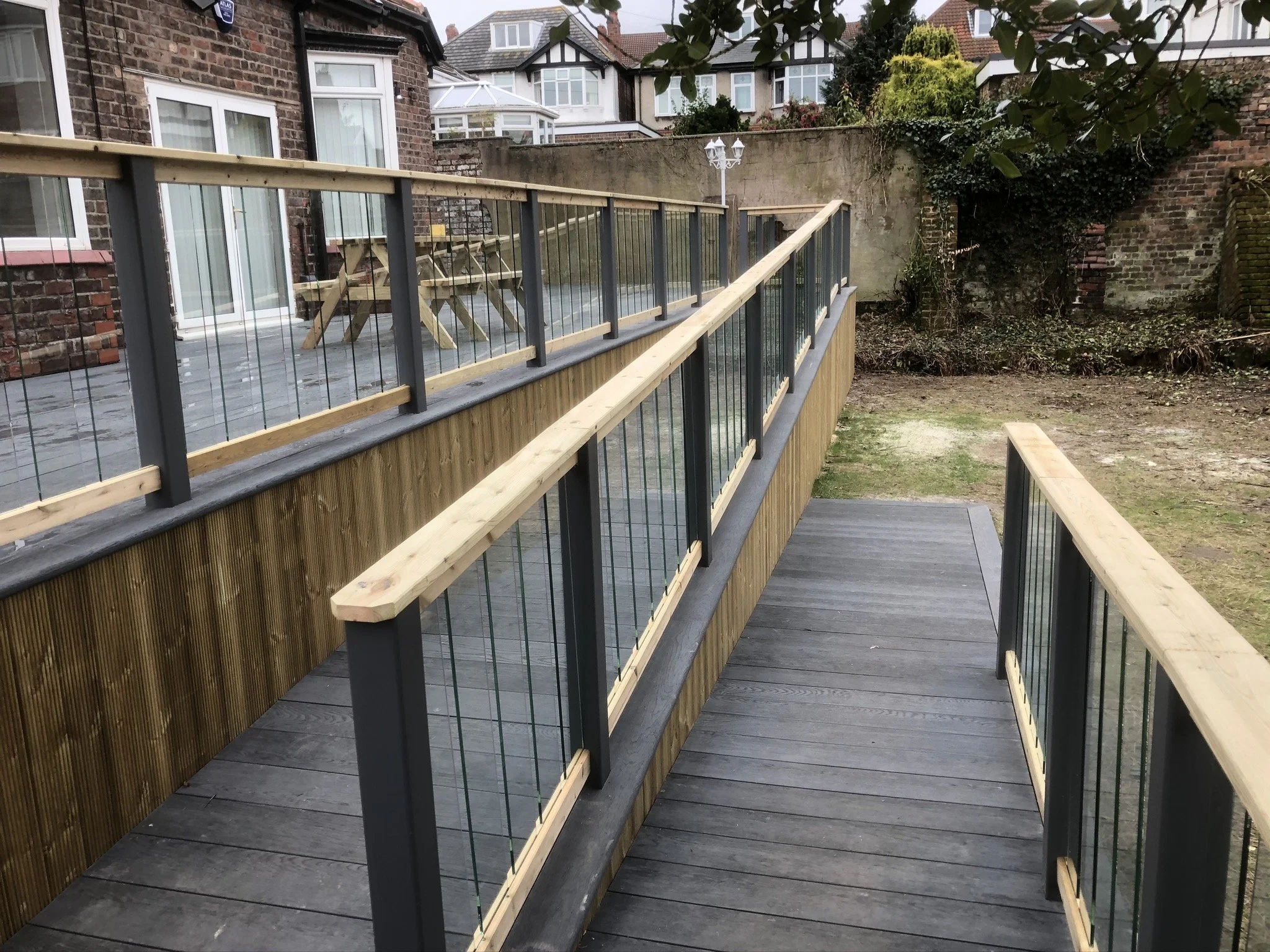Dark millboard composite decking with ramps