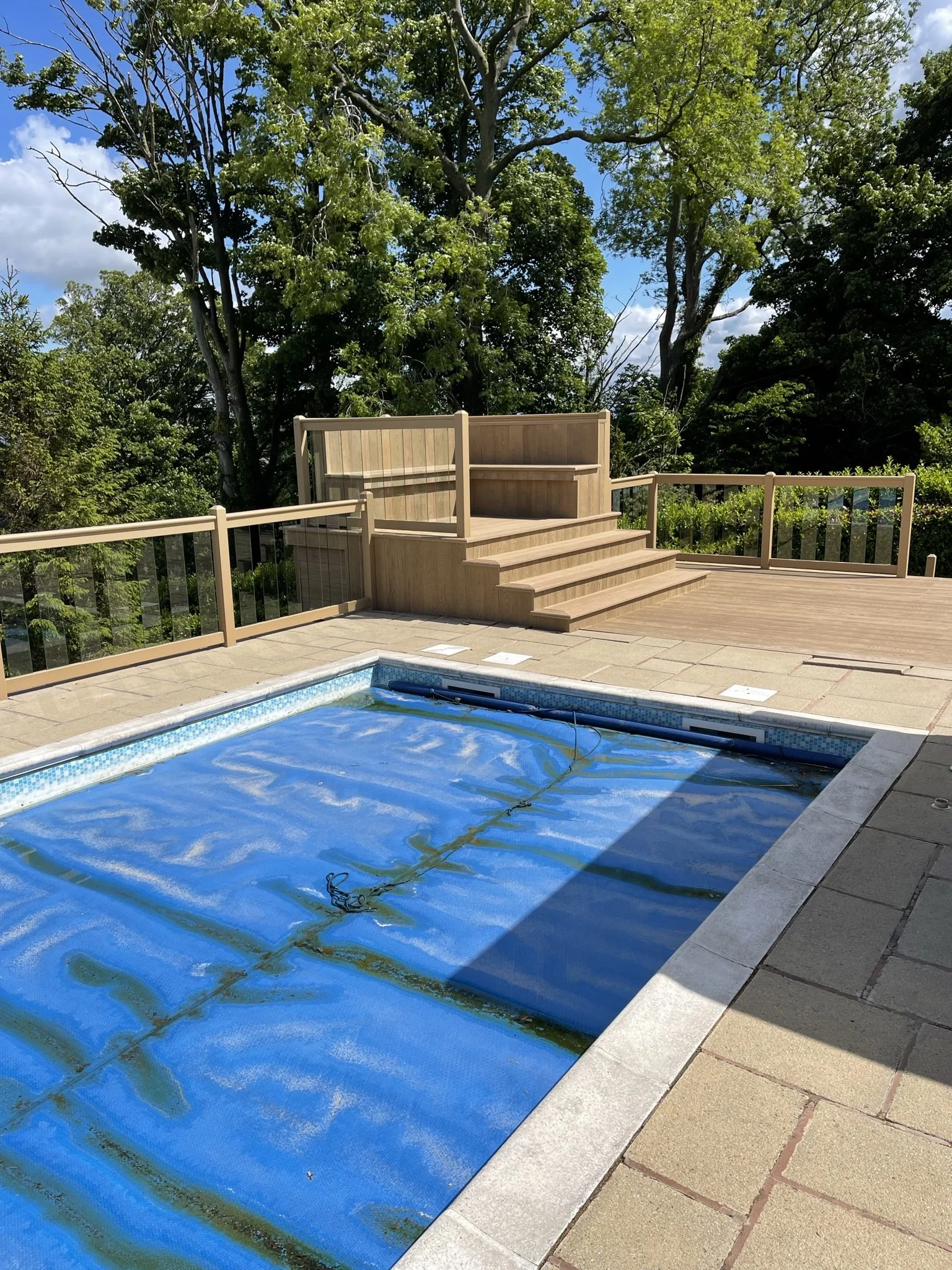 Composite decking next to swimming pool