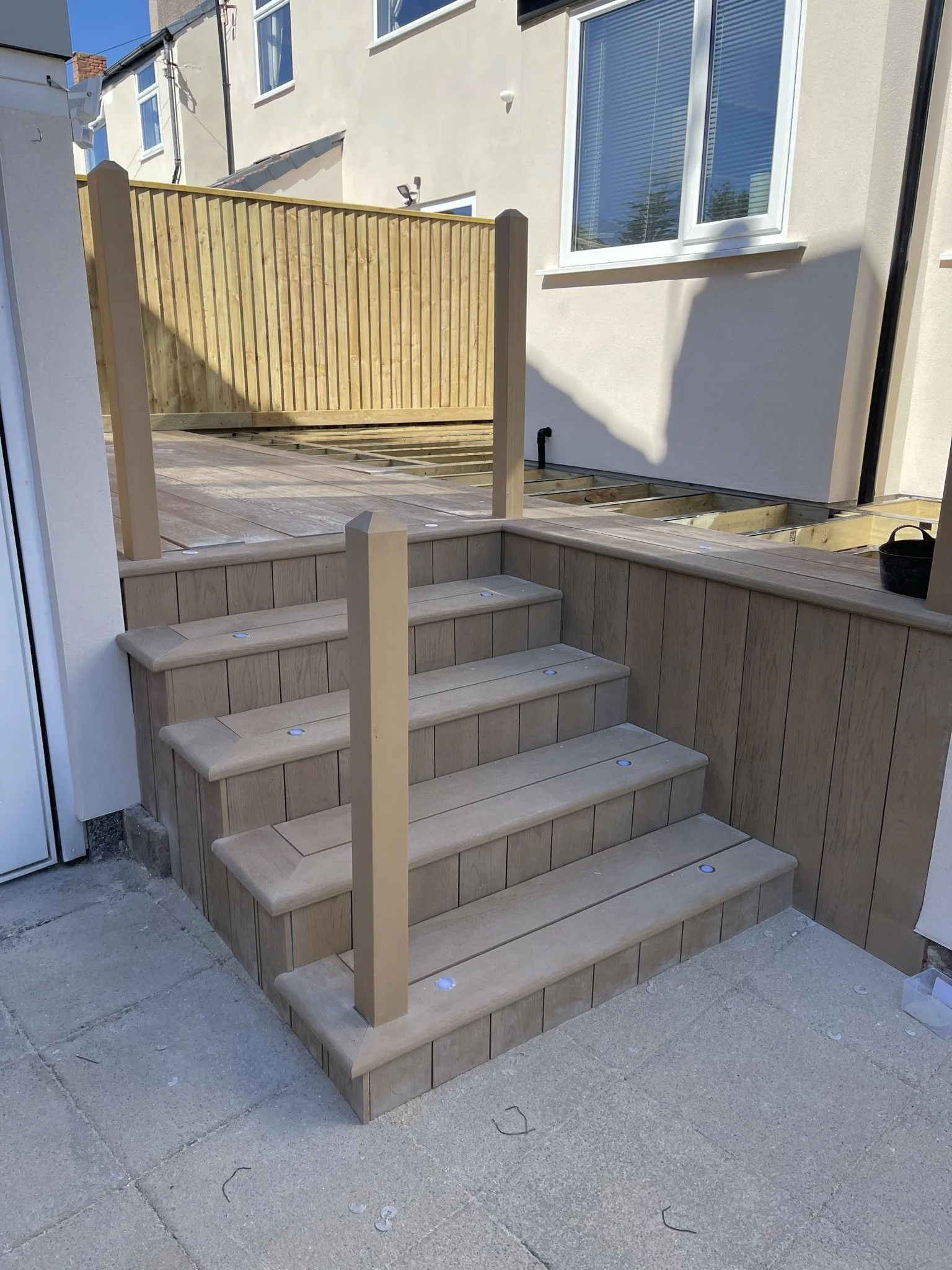Composite decking down side of house