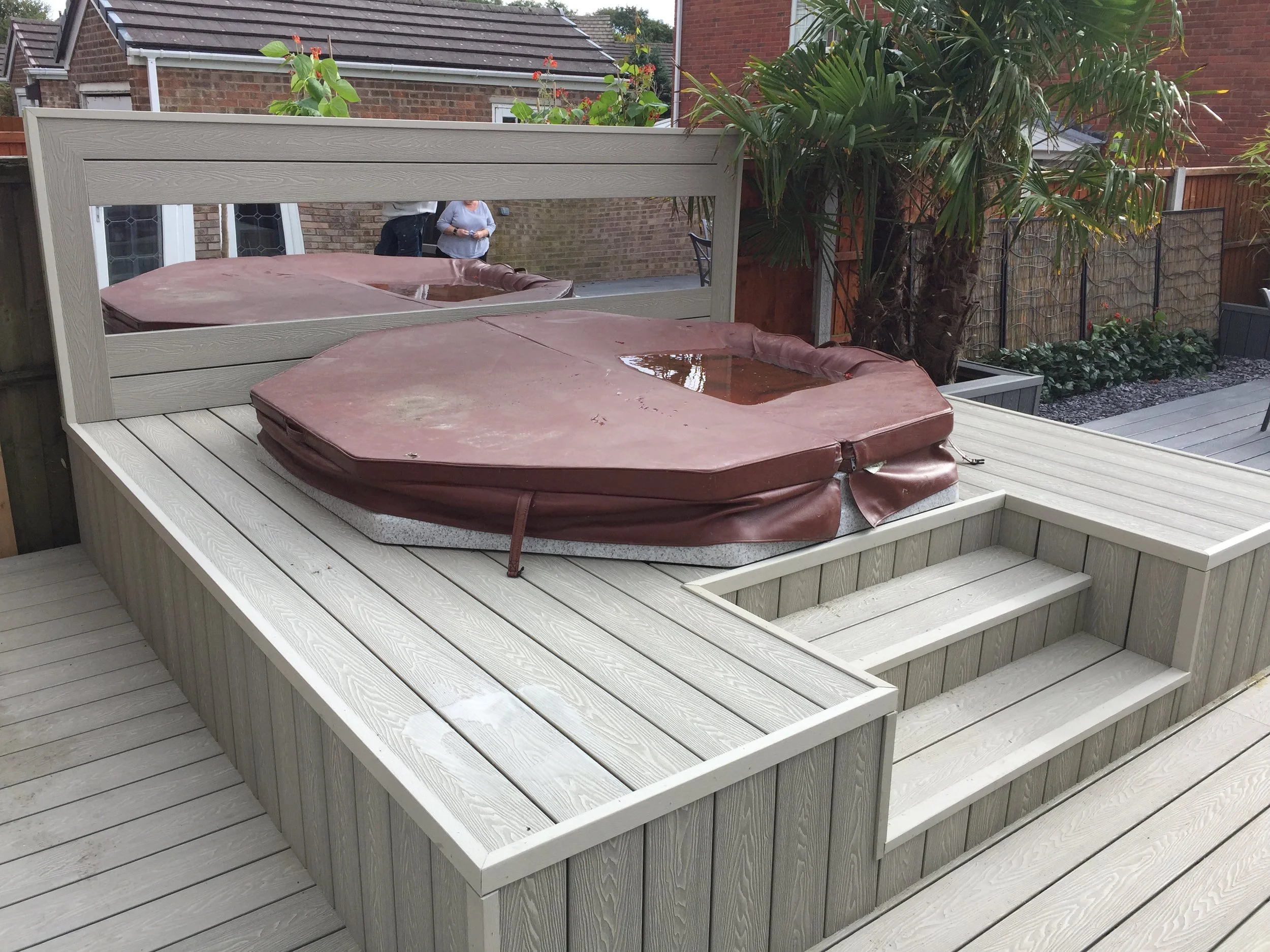 Hot tub with millboard composite decking built around it